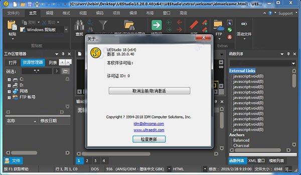 6、至此,IDM UEStudio 20中文破解版成功激活,打开软件即可直接使用。