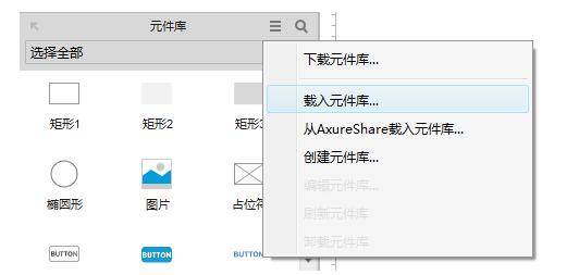 1. 在Axure软件中元件库面板中点击更多图标,然后选择载入元件库;