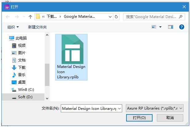 将Material Design Icon Library.rplib这个文件拷入进去,然后重启软件就可以了。