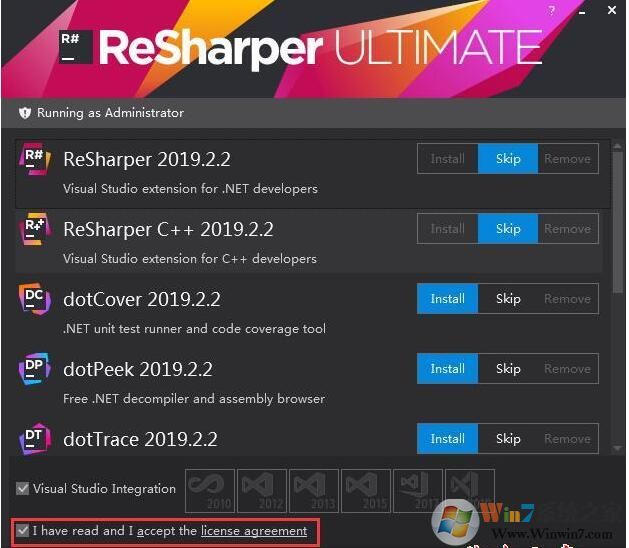 2、双击运行JetBrains.ReSharperUltimate.2019.2.2.exe