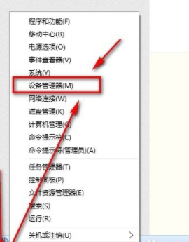 4、鼠标右键点击电脑左下角的图标,找到“设备管理器”选项,如图所示