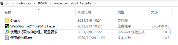 1、下载解压,得到JetBrains webstorm2021.1原程序、破解补丁和汉化补丁;