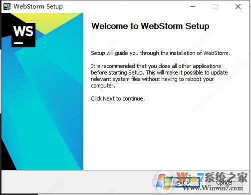 2、双击“WebStorm-211.4961.31.exe”开始安装软件,点击next;