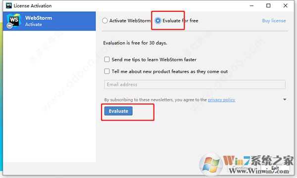 7、首次运行软件会让用户配置或导入设置、选择主题,这些用户都可以随意设置,到注册界面时,请选择evaluate for free,点击evaluate试用软件;