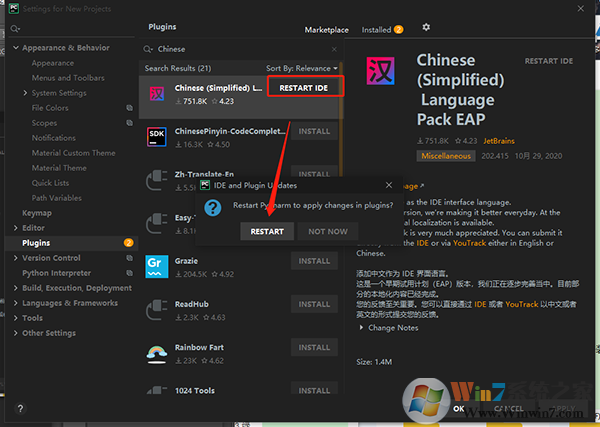 8、接着再将本站提供的“jetbrains-agent-latest.zip”文件拖放到 IDE 窗口,并点击restart;
