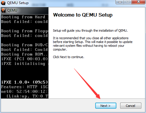 1、下载并解压缩后,双击“qemu-w64-setup.exe”运行安装包,点击“Next”下一步