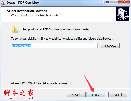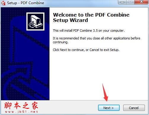2.双击“pdfcombine.exe”安装程序进入软件安装向导,见下图所示;: