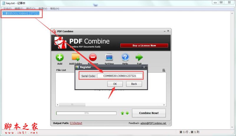 将crk文件夹下的“PDFCombine.exe”复制到源程序安装目录下并替换,软件即可激活成功。