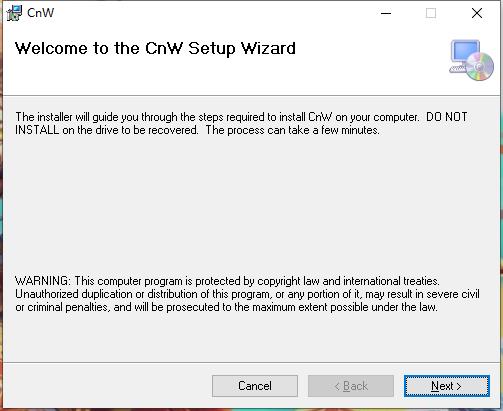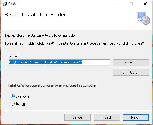 安装向导默认设置的软件默认安装路径为C:\Program Files (x86)\CnW Recovery\CnW