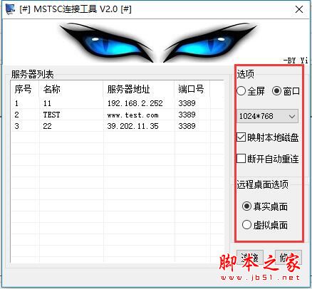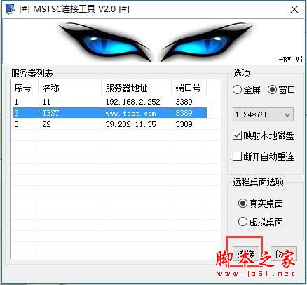 MSTSC远程连接工具是一款用SQLite+net2.0,可以全屏或窗口模式运行简易的远程桌面连接软件,可以记录多个服务器的连接设置,点击即可连接,支持映射本地磁盘以及真实桌面和虚拟桌面的功能,能够满足用户基本的远程桌面连接需求!