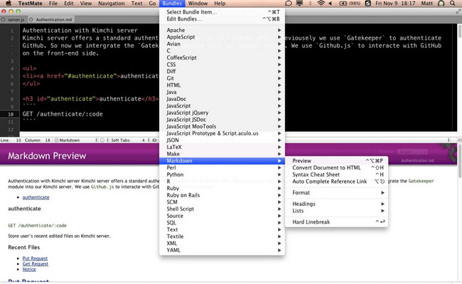 TextMate提供的文本操作也很简单,无非是移动、选中和智能变换。