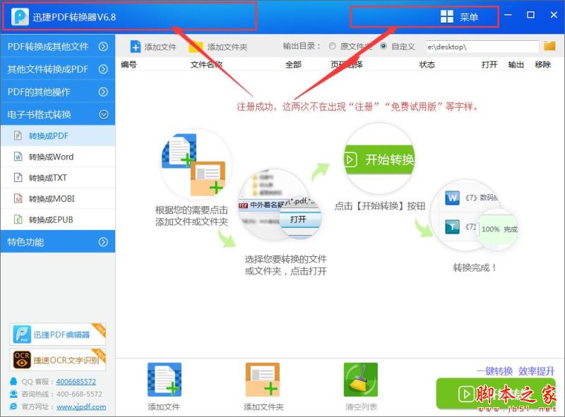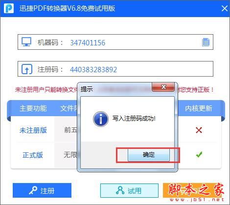 3、迅捷PDF多功能转换器试用版消失不见了,迅捷PDF转换器破解版成功注册授权,用户可以不受限制免费使用了;