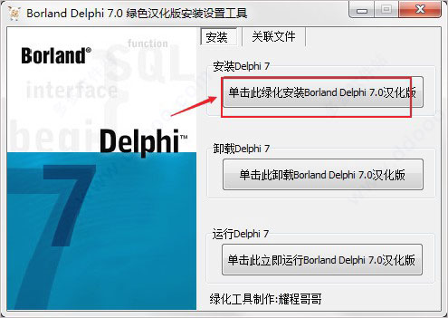 2、首先双击运行"安装设置.exe",点击安装绿化安装delphi7;