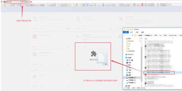 其次:将免费下载好的。crx文档拖动到此网页页面中