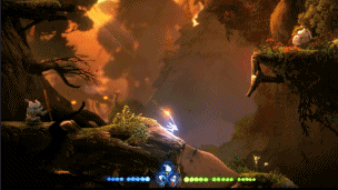 水下战斗:二代因为战斗需要奥日亲自出手,所以水下无法使用常规的战斗技能直接攻击敌人,只能靠猛击来进行反击,或是水下冲刺直接撞击敌人换血。