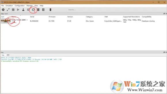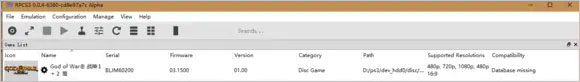 5、游戏就已经放进ps3模拟器里面了,接下来就是打开ps3模拟器,先点击图示中的1,就会在列表里面得到2战神游戏的图标;
