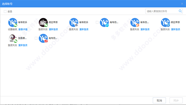点击同步或发布操作首先会弹出账号选择框,在这里选择您想要同步或发布的账号,