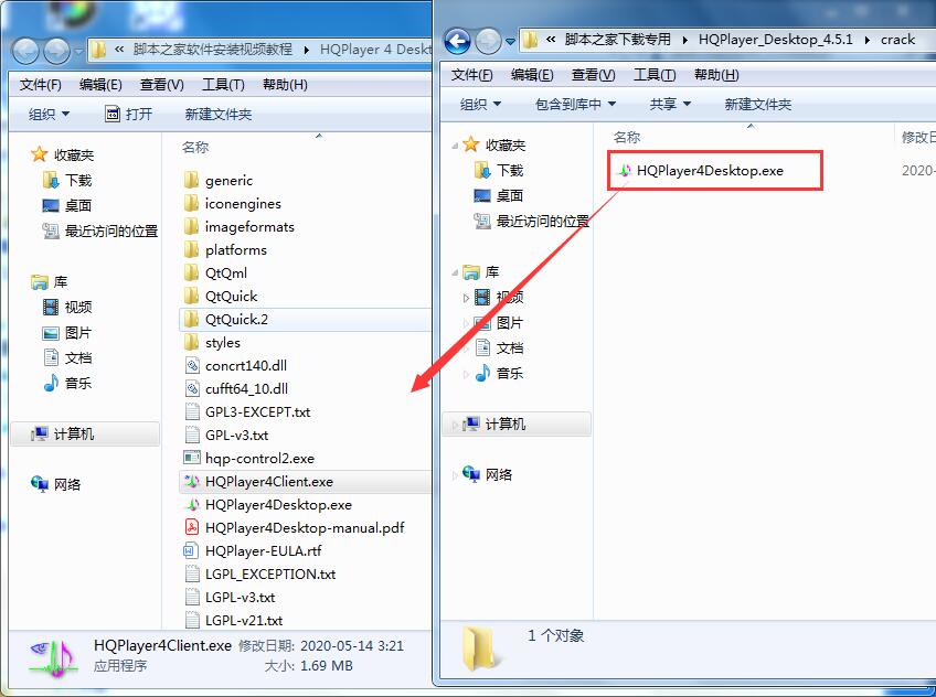 1、将winwin7分享的压缩包解压,得到HQPlayerDesktop3-setup-3204.exe和32位及64位和谐补丁。