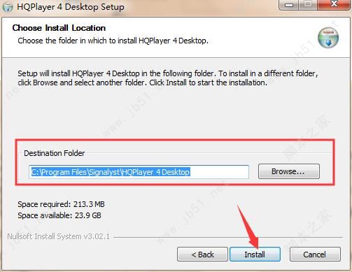 5.选择安装目录(不建议安装在C盘,默认目录为:C:\Program Files\Signalyst\HQPlayer 4 Desktop),如图