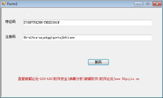 3、然后打开注册机,将在打开的注册窗口中获取的特征码信息复制到注册机中,点击【算码】按钮,将生成一组注册码