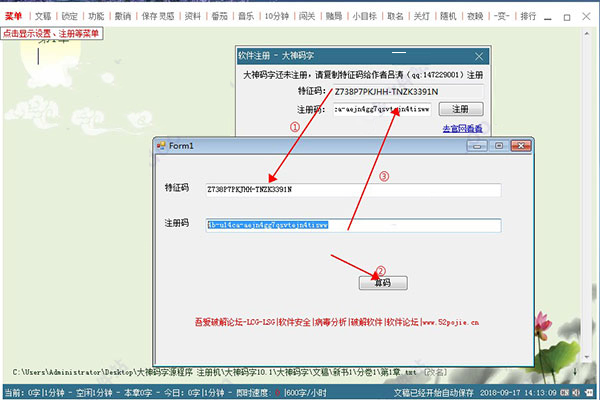 5、点击【注册】按钮即提示注册成功,至此,大神码字破解版安装完毕,请放心使用!