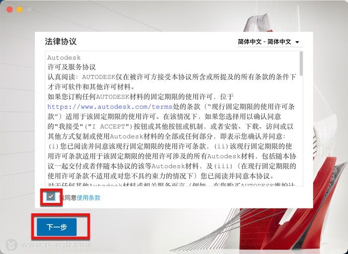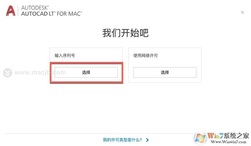 打开安装好的AutoCAD 2022 Mac版,在输入序列号一栏点击“选择”