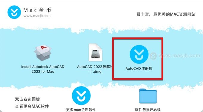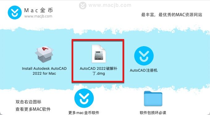 返回AutoCAD 2022安装包,双击打开“AutoCAD 2022破解补丁.dmg”