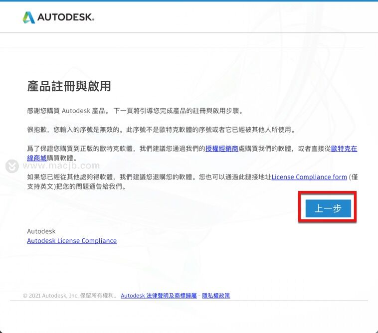 如果提示错误,没关系,重复激活一次即可,点击“上一步”