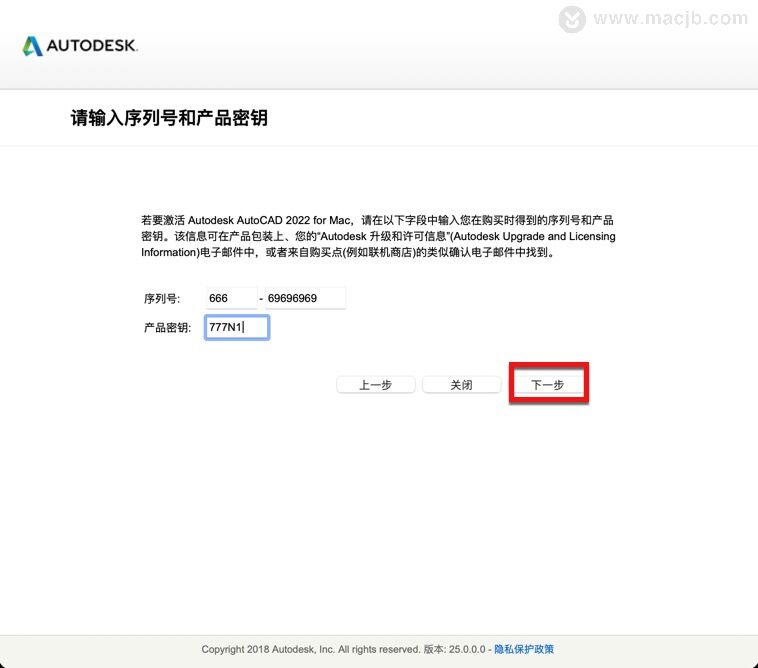 输入序列号:666-69696969 产品密钥:777N1,点击“下一步”