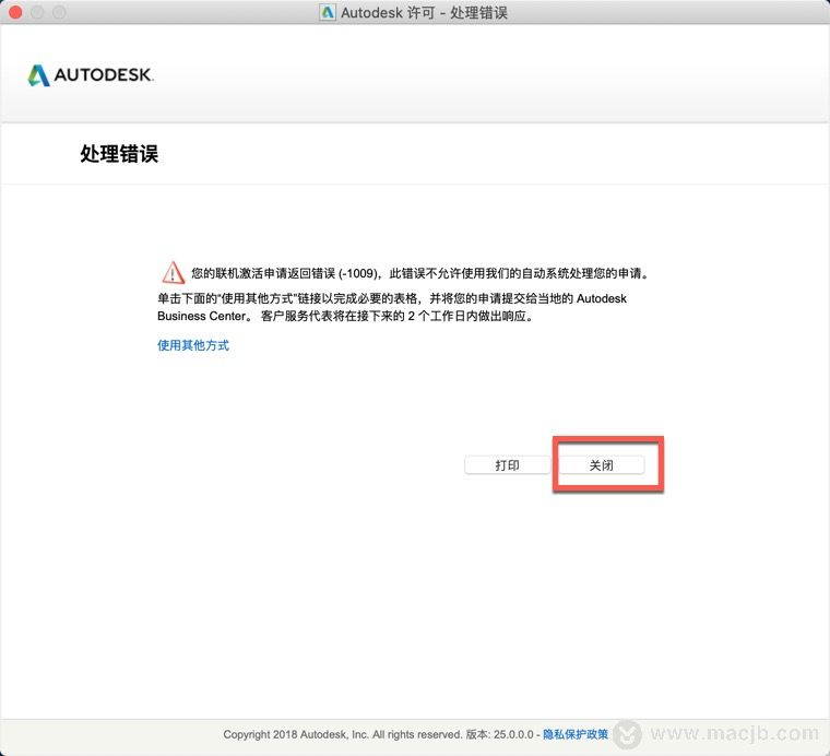 或许会提示错误,但其实已经激活成功,点击“关闭”即可