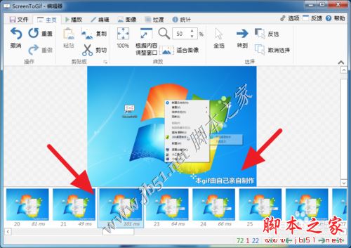 1.在编辑中有很多对帧的实际操作如:提升删掉、循环系统、翻转,尤其是清除反复帧功能,能不错的减少gif占有内存空间;
