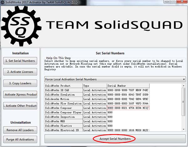 4、运行注册机“”,将选项修改为“Force Local Activation Serial Numbers”如图