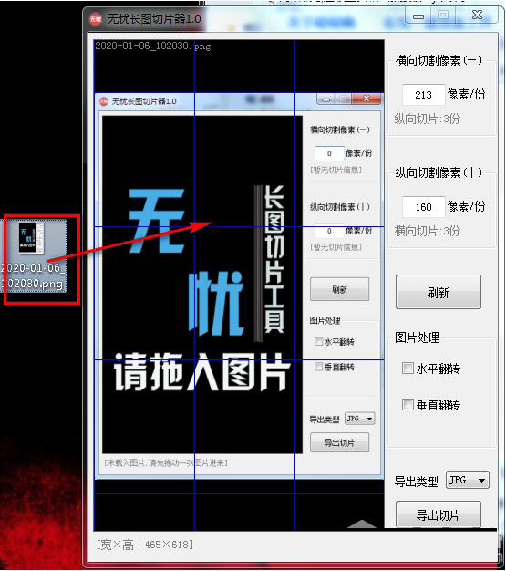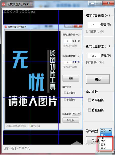 WinWin7下载小编给大家分享介绍的【无忧长图切片器】是一款能够一边预览一边将长图进行切片分割的软件,使用这款小工具可以让你直接手动修改切割像素大小,这款软件自带简单的诸如图片翻转等功能的处理,还可以选择导出的图片的格式,如果不进行切片,同时它也是一款非常不错的格式转换器,通过无忧长图切片器主要是用来解决公众号或这种九宫图之类的营销图片,具有简单易用的特点。