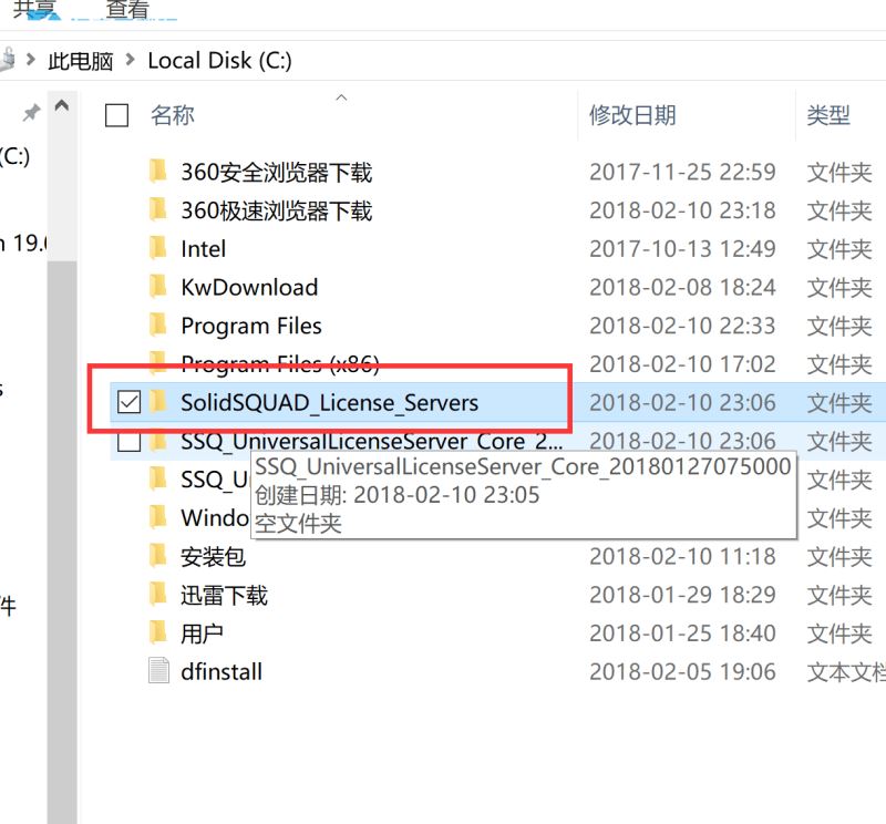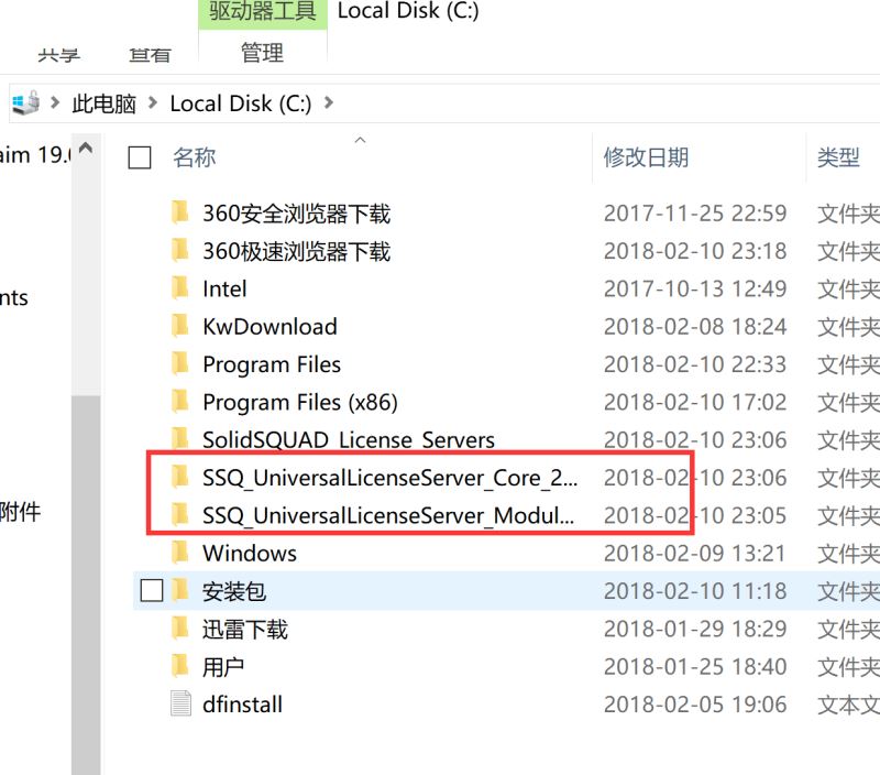 4.把SSQ_UniversalLicenseServer_Core_20180127075000文件夹内SolidSQUAD_License_Servers目录复制到根目录