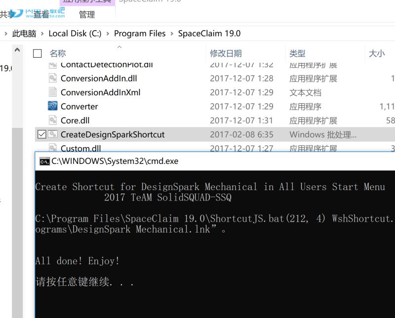 (默认情况下是C:\ Program Files \ SpaceClaim 19.0 \ CreateDesignSparkShortcut.bat)