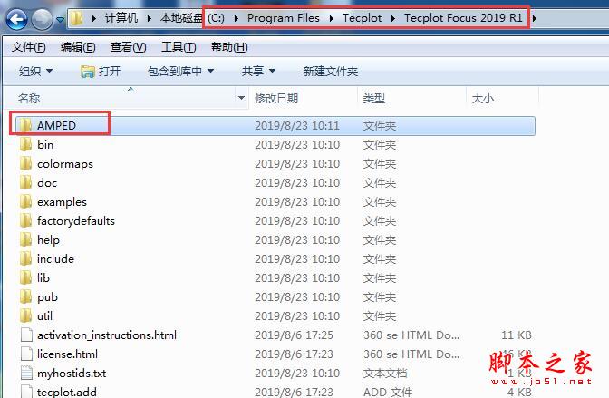 8、将AMPED文件夹复制到安装目录C:\Program Files\Tecplot\Tecplot Focus 2019 R1下,见下图