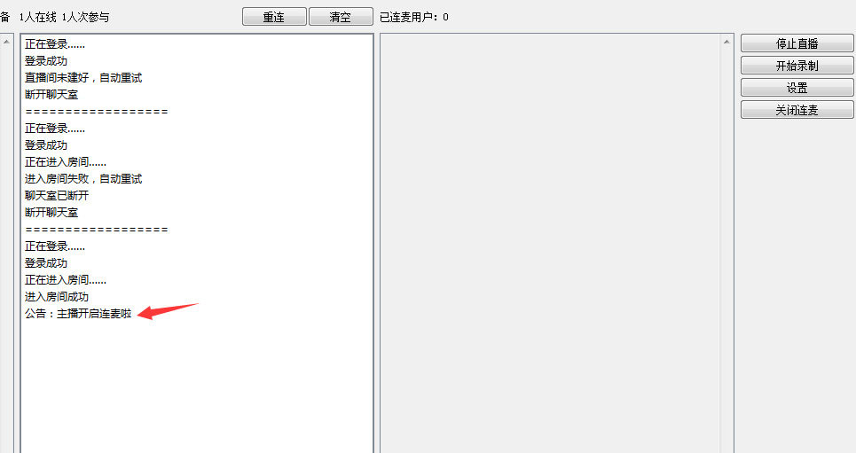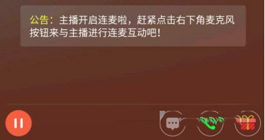 1、当主播开启连麦功能时,公屏上会以公告的形式提醒