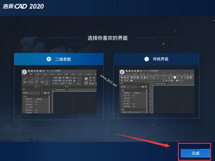 5、选择需要使用的界面类型,点击“完成”