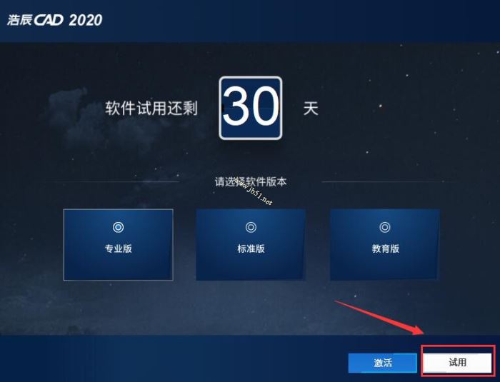 6、选择需要使用的版本,点击“试用”