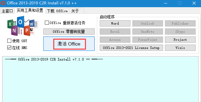 3、此版本未激活,可使用Office 2013-2019 C2R Install工具 ,点击激活即可