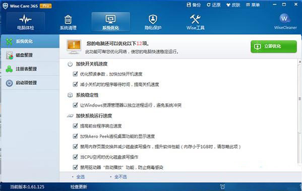 Wise Care 365 Pro是一款专业的系统优化软件,可以进行注册表和垃圾文件的清理,用来管理、维护、配置以及解决电脑故障,还可以帮助更多的用户保护个人的隐私,支持电脑的系统优化、碎片处理等操作,轻松加速您的系统!