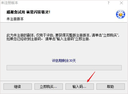 5、安装完成后,关闭安装向导,将会弹出输入注册码界面,如下图所示,点击输入码;
