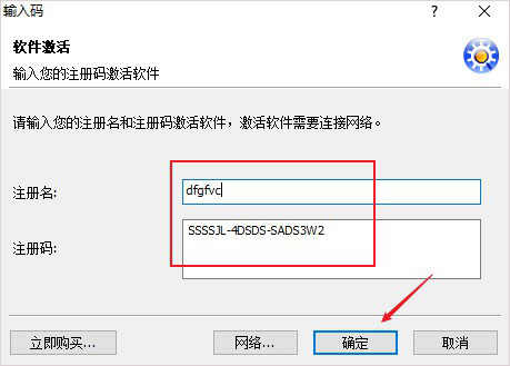 7、注册名任意填写,将ssskjl-1dsda-212dasa,ssssjl-4dsds-sads3w2填入注册码栏中,点击确认即可;