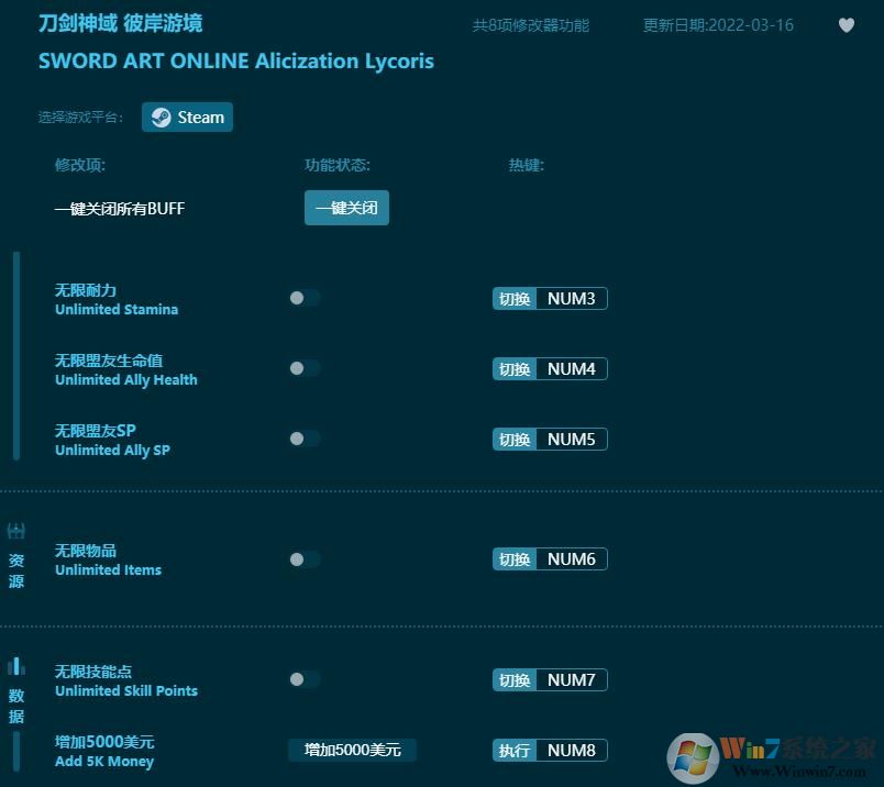 3、运行“刀剑神域 彼岸游境”游戏4、游戏运行后点击“加个Buff"按钮,当然大家也可以进行单项修改