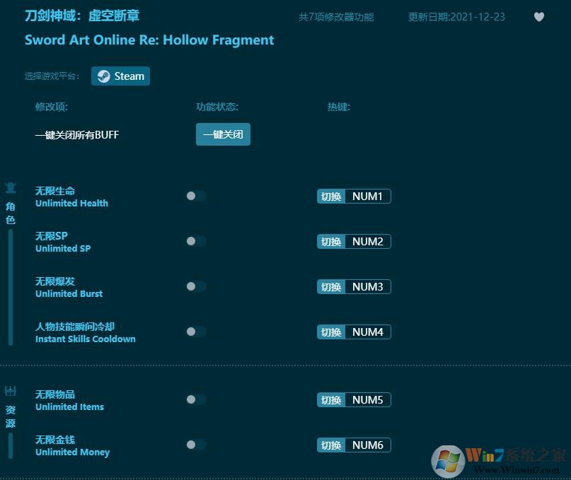 3、运行“刀剑神域:虚空断章”游戏4、游戏运行后点击“加个Buff"按钮,当然大家也可以进行单项修改