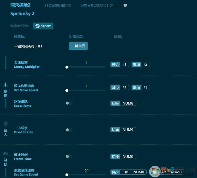 洞穴探险2修改器功能说明