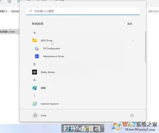 8、之后在开始菜单找到APO驱动,打开FX配置器