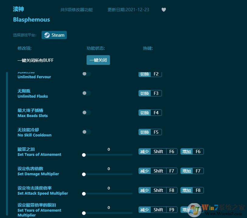 3、运行“渎神”游戏4、游戏运行后点击“加个Buff"按钮,当然大家也可以进行单项修改