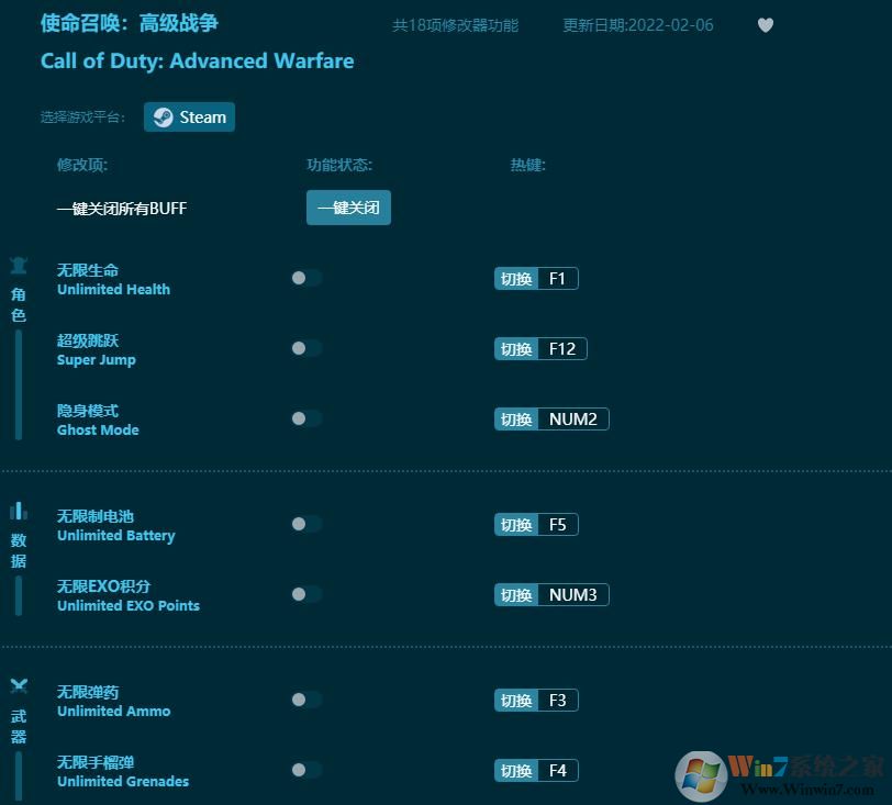 3、运行“使命召唤:高级战争”游戏4、游戏运行后点击“加个Buff"按钮,当然大家也可以进行单项修改