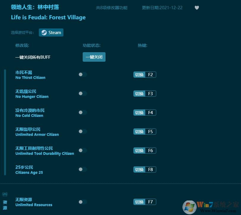 3、运行“领地人生:林中村落”游戏4、游戏运行后点击“加个Buff"按钮,当然大家也可以进行单项修改